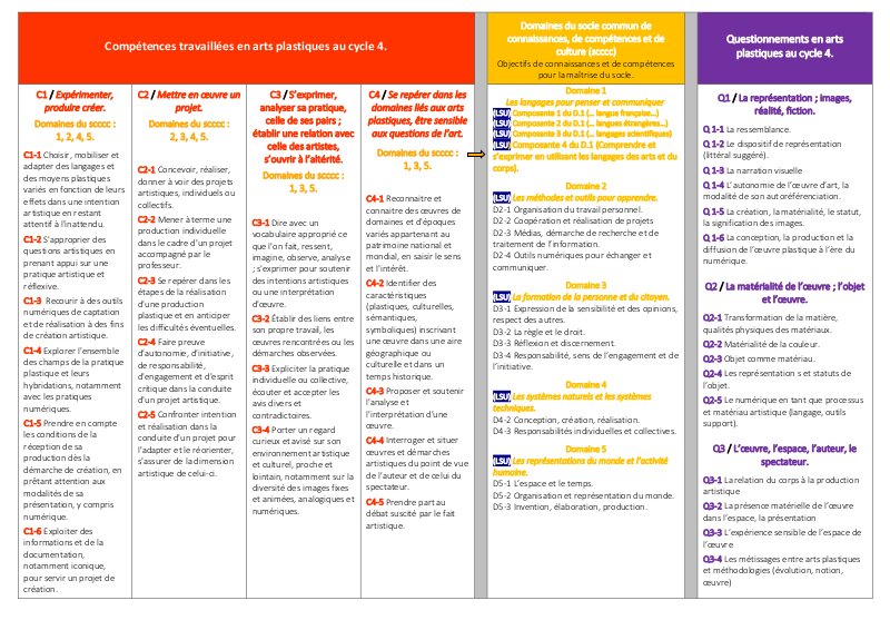 Tableau Competences Domaines Questionnements Cycle4