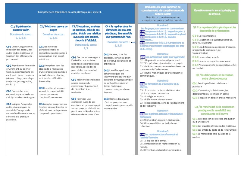 Tableau Competences Domaines Questionnements Cycle3