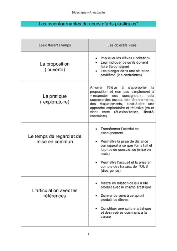Les Incontournables du cours d'Arts Pastiques