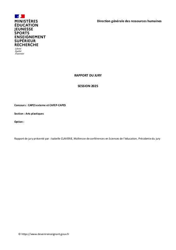 Capes externe Arts Plastiques Rapport du Jury session 2025