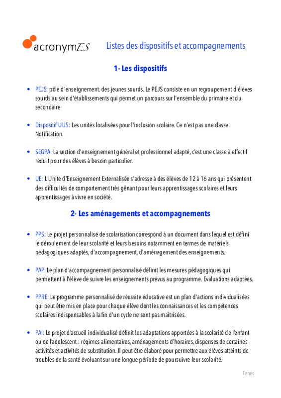 Liste des acronymes collège